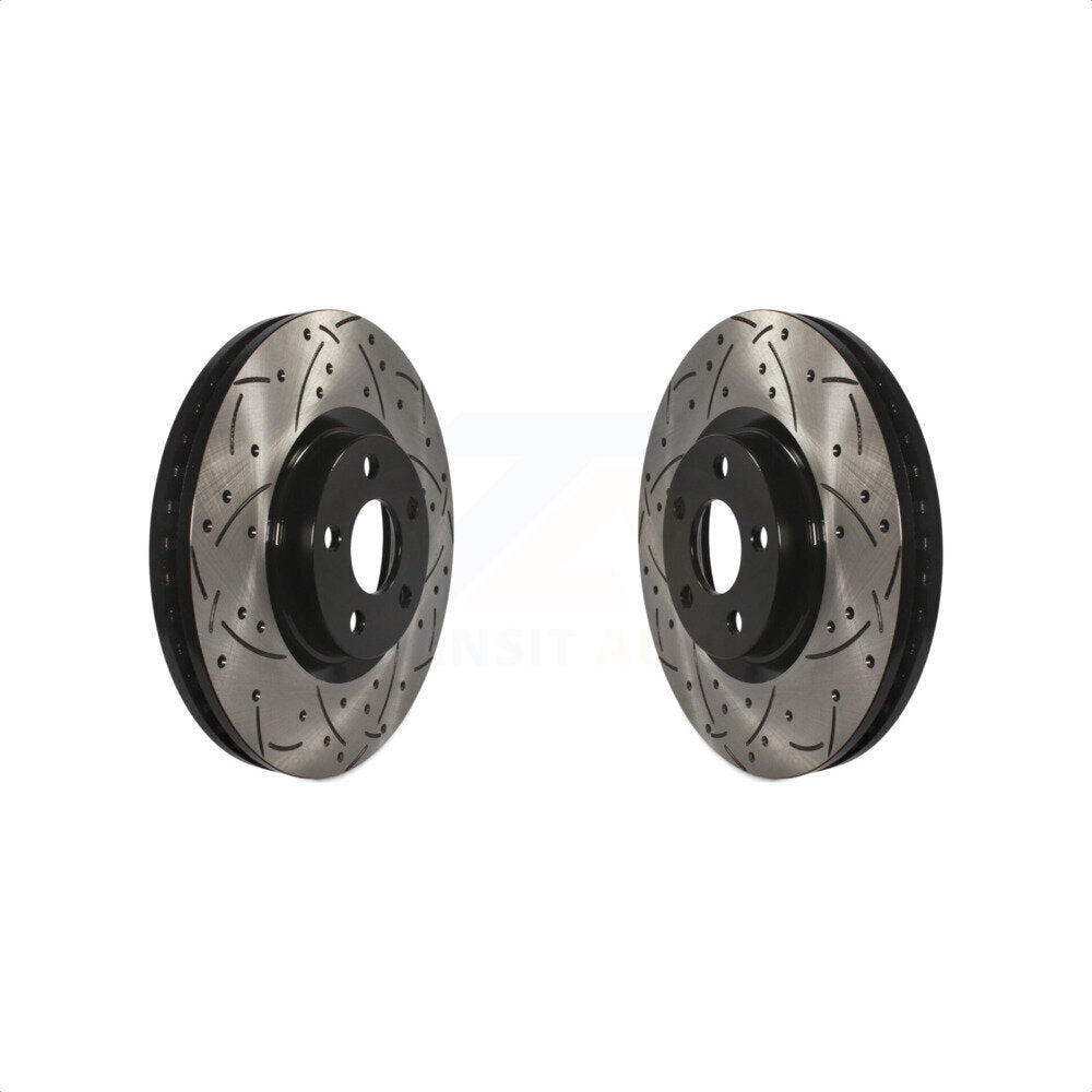 Front Coated Drilled Slotted Disc Brake Rotors Pair For Ford Edge Lincoln Continental Police Responder Hybrid SSV Plug-In KD-100023