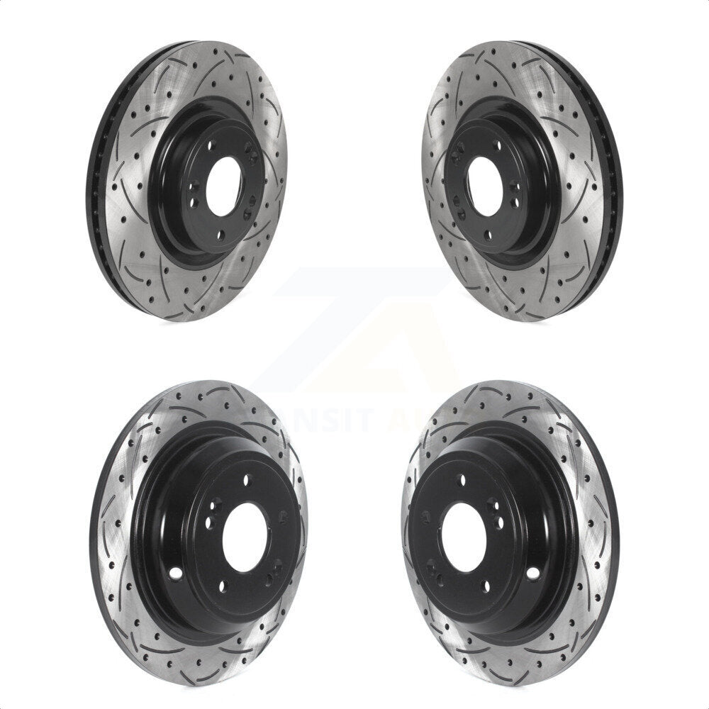 Front Rear Coated Drilled Slotted Disc Brake Rotors Kit For Hyundai Genesis KD-100490